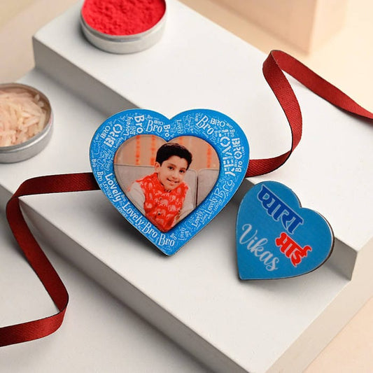 Personalized Rakhi Gift Combo - Custom Photo Rakhi and KitKat