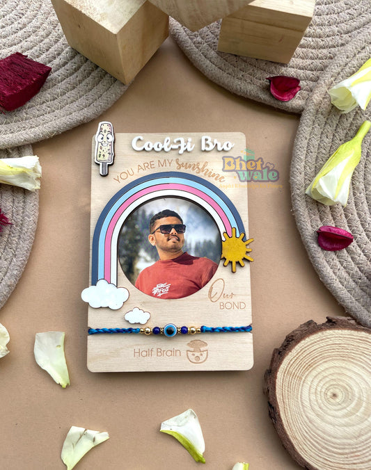 Cool-Fi Bro Rakhi with Fridge Magnet – Evil Eye Theme (6x4" Handmade Birch Ply)