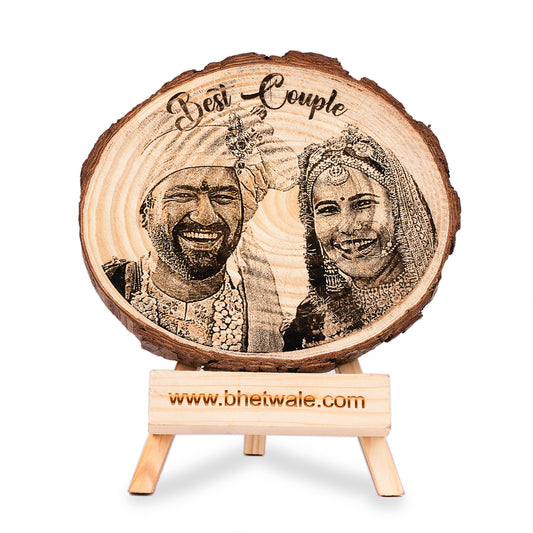Customized Engraved Natural Wooden Slice Photo Frame with Wood Stand