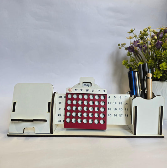 Elegant MDF Desk Companion – 3-in-1 Organizer with Infinity Calendar