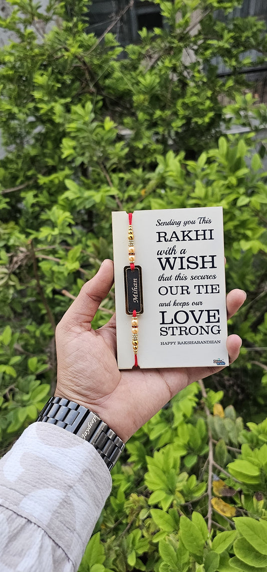 Personalized Name Rakhi with Message Card – Acrylic & MDF Combo
