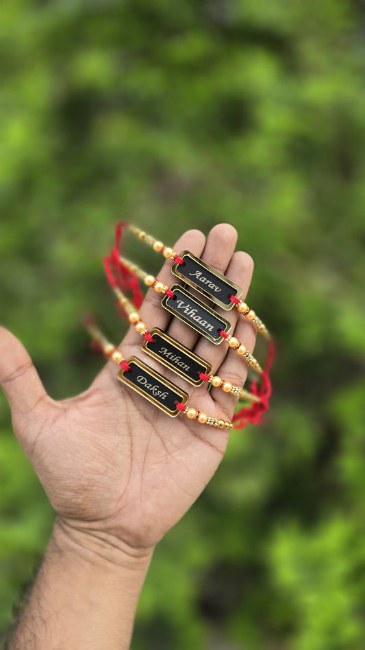 Personalized Acrylic Name Rakhi – Black & Gold Edition