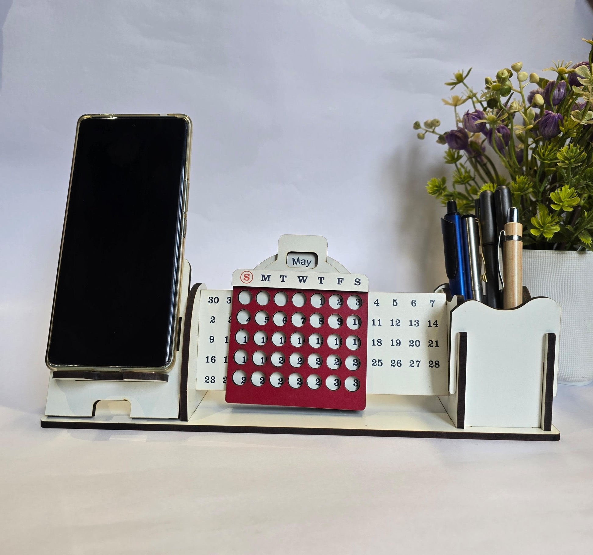 Elegant MDF Desk Companion – 3-in-1 Organizer with Infinity Calendar