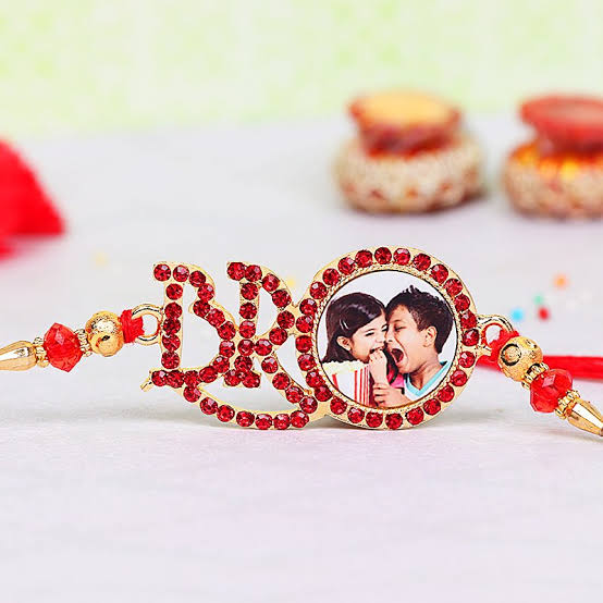Celebrate the bond of love with this stunning Personalized BRO Photo Rakhi. This beautiful Rakhi features a customizable photo frame surrounded by vibrant red stones. Add your favorite picture of you and your brother to make this Rakhi truly special. Perfect for adding a personal touch to your Raksha Bandhan celebrations.