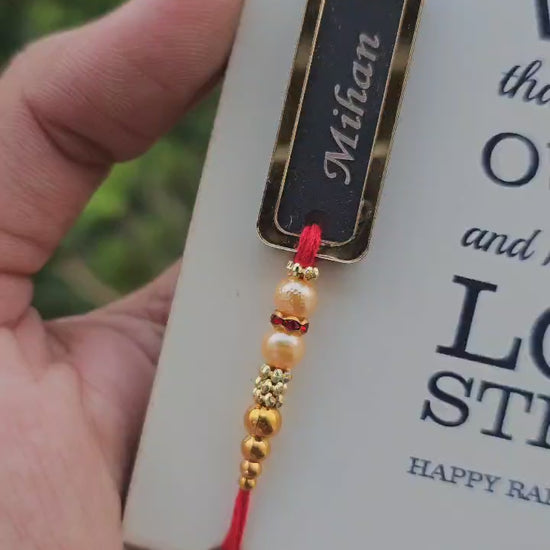 Personalized Name Rakhi with Message Card – Acrylic & MDF Combo