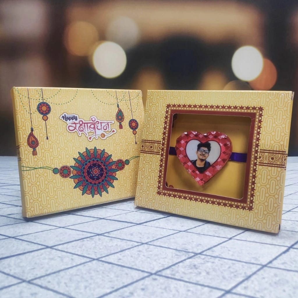 Personalized Photo Crystal Rakhi - Charming Heart Design