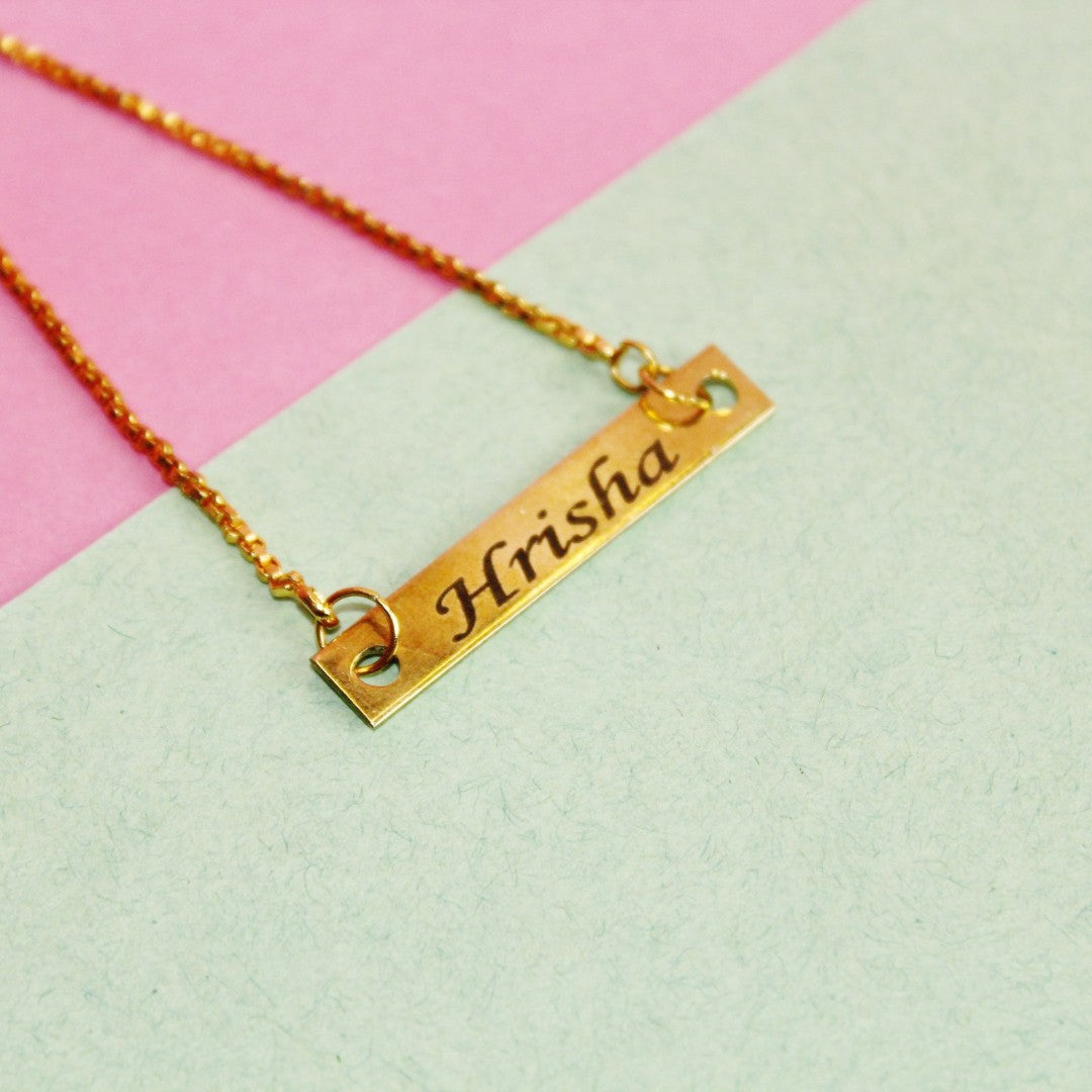 Gift your brother a timeless piece with our Classic Gold Nameplate Rakhi. This Rakhi features a sleek gold-tone nameplate engraved with your loved one's name, strung on a sturdy chain. Its minimalist yet elegant design ensures it stands out as a unique and personal accessory this Raksha Bandhan.